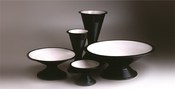 Serie di cinque pezzi: tre ciotole portafrutta e due vasi porta fiori. L’ “Alzata” veniva colata in due parti (ciotola superiore e base inferiore), che venivano prontamente attaccate dal rifinitore.