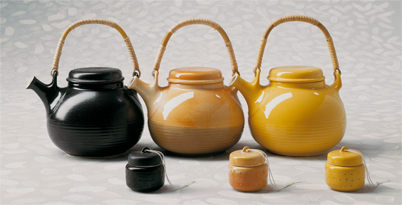 Teiera prodotta in due misure, con manico in bambù, corredata di colino in grès per infusi; può essere abbinata al bicchiere da tè.
