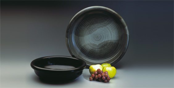 Queste ciotole, realizzate in due misure, hanno come bordo un grosso anello, vuoto al suo interno, che caratterizza la linea e facilita la presa. Il bordo come un grosso tubo è stato reallizzato separatamente ed attaccato a mano dal rifinitore. La parte interna della ciotola è decorata con una spirale tornita a mano. Queste ciotole si prestano a molti usi: centrotavola, fruttiera, portavaso o grande piatto da portata.